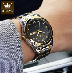 | Title: | Olevs Golden And Silver Two Tone Stainless Steel Analoge Wrist Watch For Men - Black And Silver And Golden |